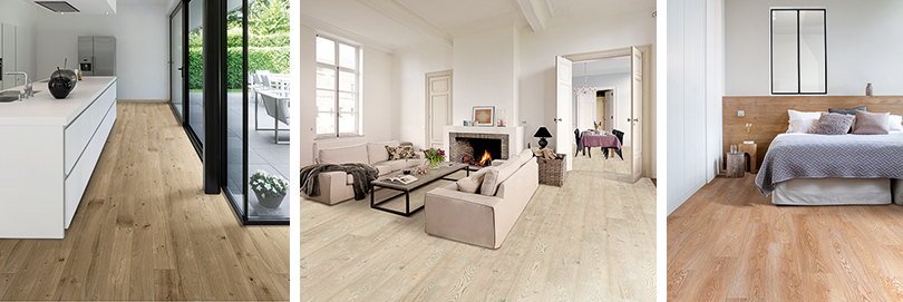De vloeren met ‘3D Wood effect’ benadrukken het natuurlijke reliëf van de duidelijk voelbare houtnerven. De variëteit in glansgraad zorgt voor een authentiek mat effect. ‘Soft Touch Mat’ lijkt op een authentieke houtstructuur met een extra mat effect. Bij de ‘Hand scraped’-afwerking hebben de vloeren een realistische vakmanslook, alsof elke plank met de hand gemaakt werd. Het resultaat is een prachtige vloer met veel karakter. ‘True to nature’ heeft een structuur die perfect het onderliggende houtdecor volgt en geeft de indruk van een massief houten vloer. Met ‘Chromezone’ heb je een afwerking die de houtnerf benadrukt en een glanzende uitstraling heeft.
